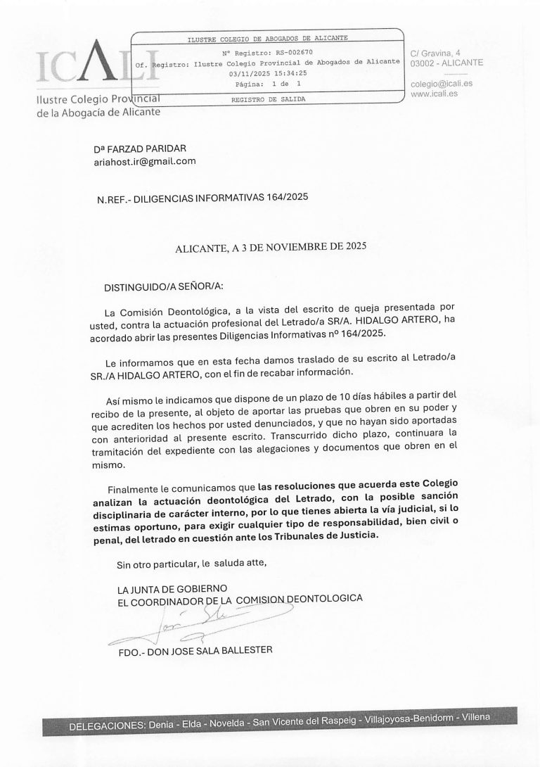 Este sitio web está diseñado para informar y concienciar a personas de todo el mundo sobre el fraude, el comportamiento poco profesional y los documentos financieros fraudulentos de tres abogados en Alicante, respaldados por pruebas legales y jurídicas completas, para evitar que personas de todo el mundo sean engañadas por estos tres abogados. Su objetivo es documentar para la audiencia global cómo estos tres abogados españoles fraudulentos han defraudado colectivamente 200.000 euros y han permanecido protegidos bajo el amparo del Colegio de Abogados de España, buscando nuevas víctimas cada día. Todo el contenido de este sitio web se publicará sin acusaciones, pero de manera completamente documentada, legal y profesional
